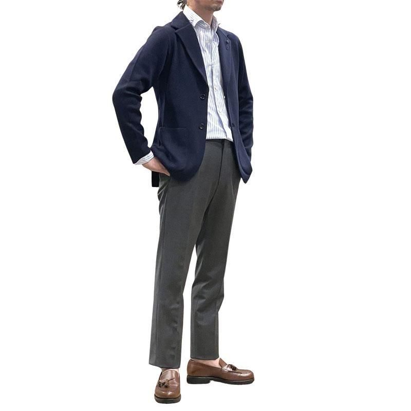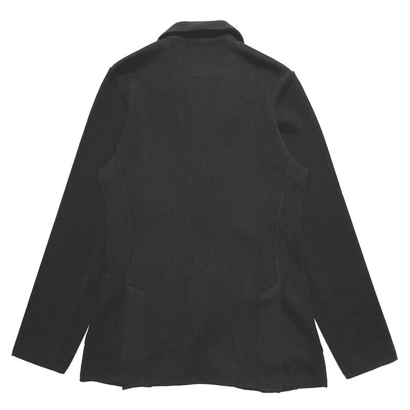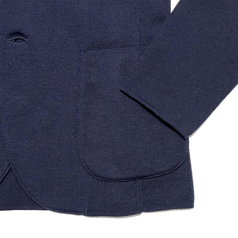 LARDINIのアイコンとも言えるミラノリブの定番ニットジャケットです。ニットジャケットでありながらもグラマラスにシェイプの効いたウエストやサイドベンツといった仕様にジャケットブランドとしての矜持が感じられる1着。ビジネス・カジュアルともに活躍するオンオフ兼用モデルにして、ニット地はハリ・コシがありながらも抜群の伸縮性によるストレスフリーな着心地です。ゴルフの行き帰り等も含め幅広いシーンで活躍。カラーはネイビーとブラックの2色、XXS / XS / S / M / L の5サイズ展開です。