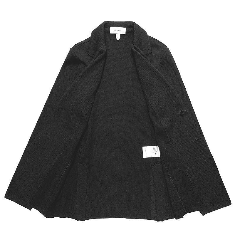 LARDINIのアイコンとも言えるミラノリブの定番ニットジャケットです。ニットジャケットでありながらもグラマラスにシェイプの効いたウエストやサイドベンツといった仕様にジャケットブランドとしての矜持が感じられる1着。ビジネス・カジュアルともに活躍するオンオフ兼用モデルにして、ニット地はハリ・コシがありながらも抜群の伸縮性によるストレスフリーな着心地です。ゴルフの行き帰り等も含め幅広いシーンで活躍。カラーはネイビーとブラックの2色、XXS / XS / S / M / L の5サイズ展開です。 (モデル:170cm 54kg XXSサイズ着用) |