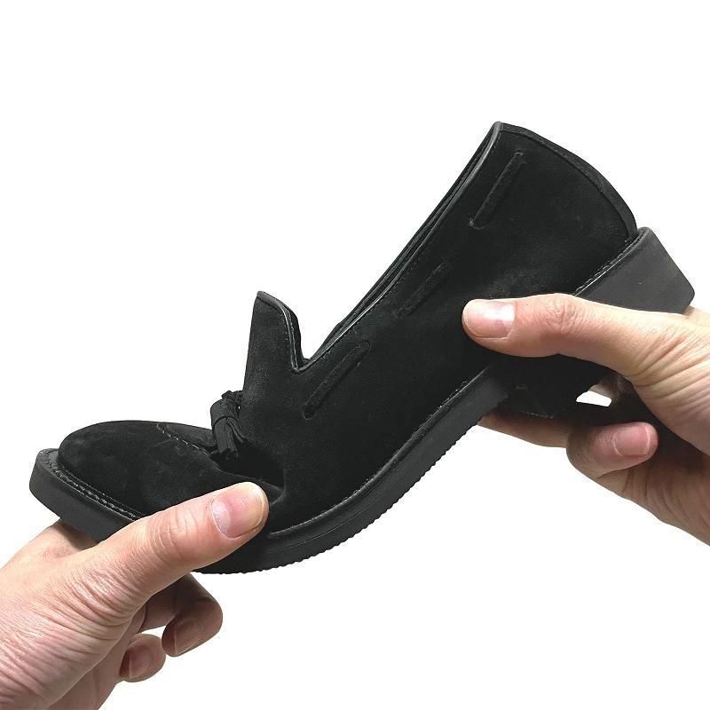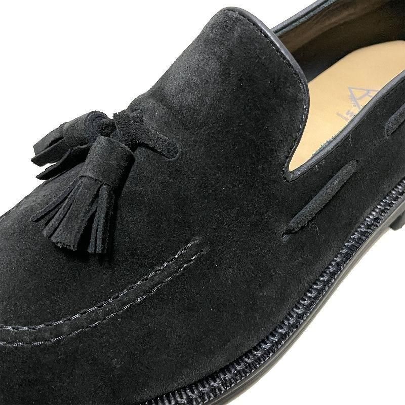 | 世界最高峰と賞される(英)チャールズ・F・ステッド社のきめ細かく滑らかで上品なスウェード、「ヤヌスカーフ」を使用したタッセルローファーです。ソールには軽量かつクッション性に優れたビブラム社のガムライトソールを使用しています。ヤヌスカーフはいわゆる「銀付きスウェード」であり、それを活かしたアンライニング仕様によりソフトでしなやかな包み込まれるような履き心地。重厚感のあるルックスに反してグニャリと曲がる屈曲性による、まるでスニーカーを履いているかのようにストレスの無い歩行を提供する1足。まさに履いた瞬間から足に馴染みます。カラーはブラック、6.5 / 7 / 7.5 / 8 / 8.5 / 9 / 9.5 の7サイズ展開です。