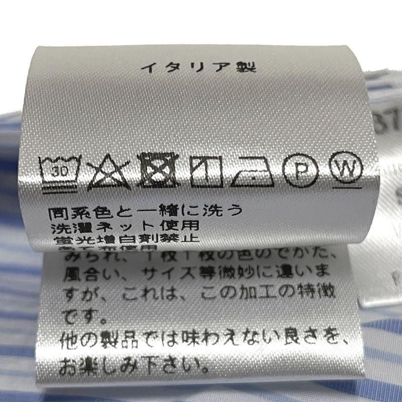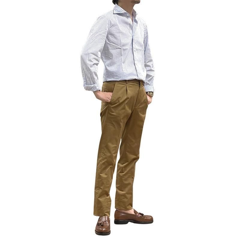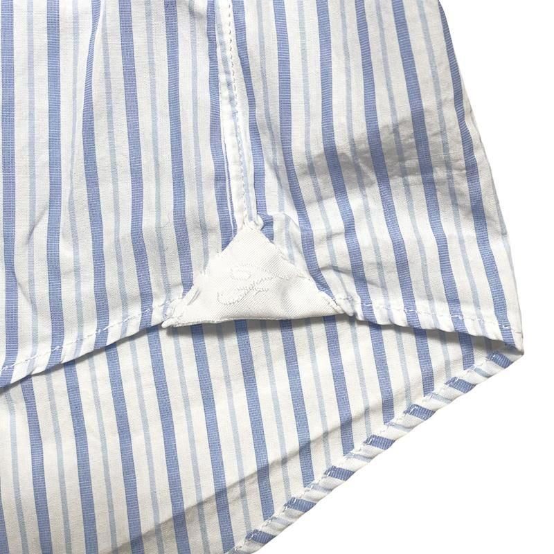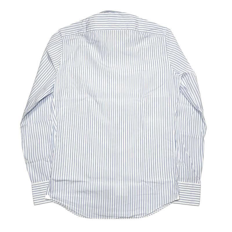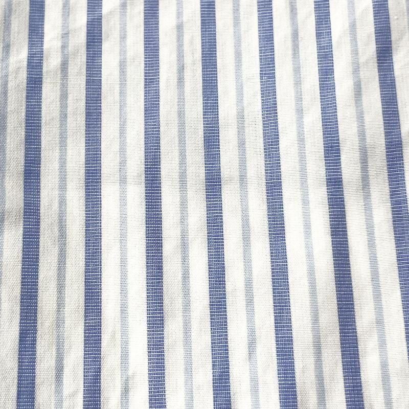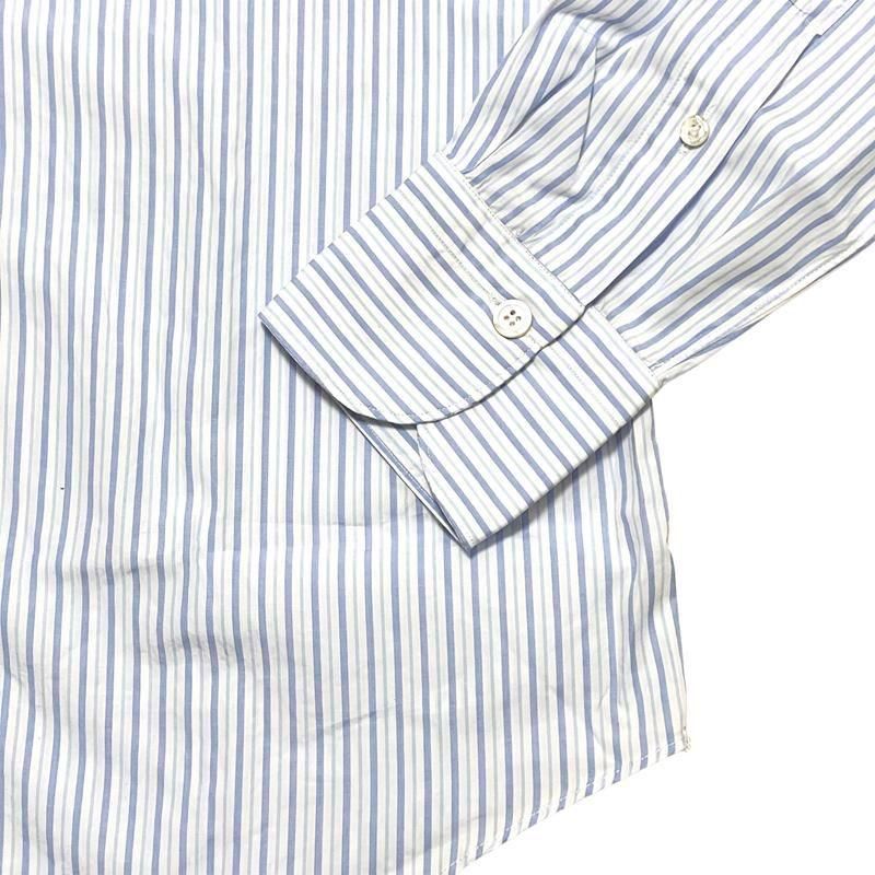 アームホール、ボタン、裾のガゼットをそれぞれ手縫いで仕立てたオルタネートストライプ柄のブロードシャツ。台襟の高さ3.5cmのカッタウェイカラー「SIMONE-シモーネ-」は、襟のロール感や開き具合が絶妙なフィナモレの代名詞とも言える襟型です。夏は1枚で、春・秋・冬はインナーとして、オールシーズン活躍します。ホワイトをベースに大小2種類のブルーのストライプが映える、ビジネスシーンでもカジュアルシーンでも着用可能なオン・オフ兼用モデル。XS / S / M / L の4サイズ展開です。創業100周年を記念した織りネームや下げ札が付属する限定モデル。