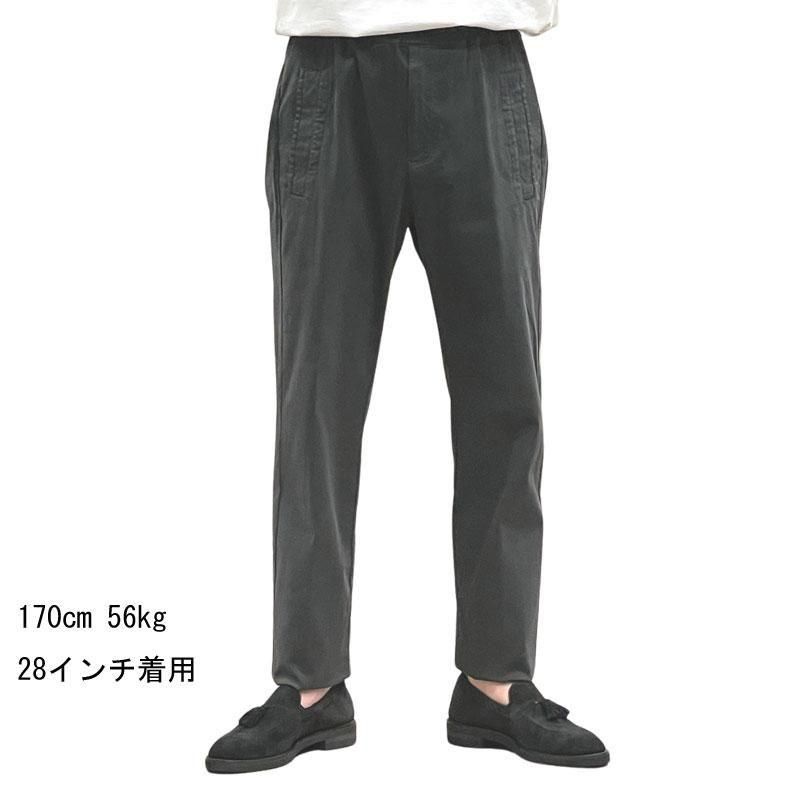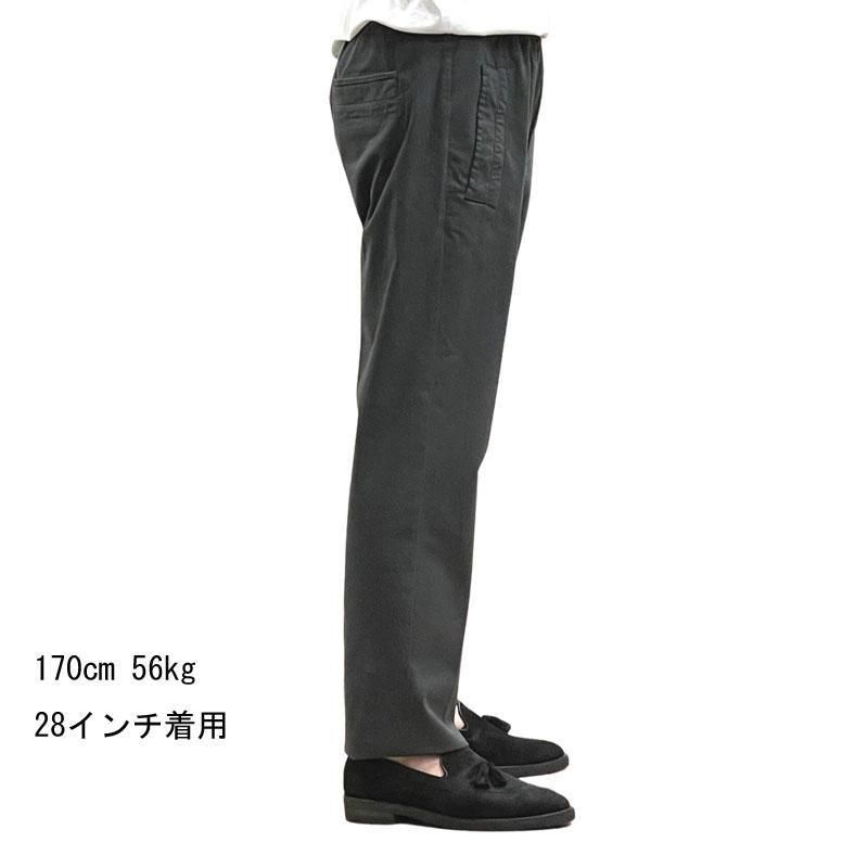 肌離れの良いゆったりとしたシルエットとウエストシャーリングによるイージーワークパンツです。バイオウォッシュを施すことで、特徴的なディティールのポケットに生じたアタリやパッカリングが印象的なヴィンテージ感のある1本。ソフトで滑らかな肌触りのストレッチコットンを使用したストレスフリーな履き心地。軽装の際にも存在感を発揮し、ほぼオールシーズン活躍します。28 / 29 / 30 / 31 / 32インチの5サイズ展開です。 (モデル:170cm 56kg 28インチ着用) |