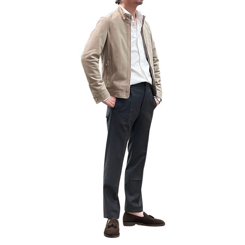 EMMETI エンメティ メンズ JAGO SP NUBUCK MOON LIGHT ヤゴ スペシャル ヌバック シングル ライダースジャケット グレージュ