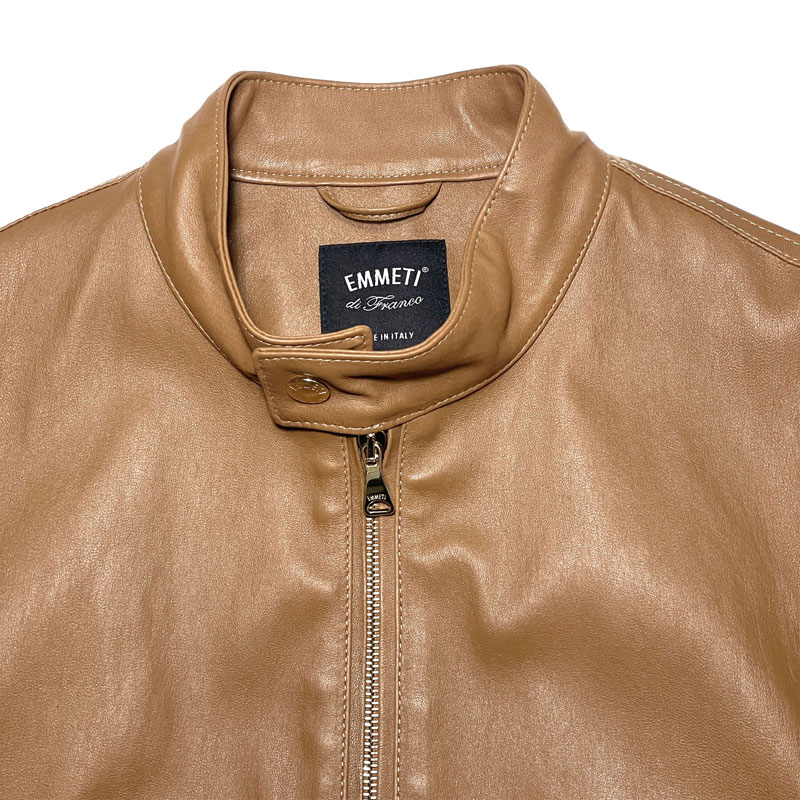 EMMETI エンメティ メンズ JURI SP LAMB SKIN ユリ スペシャル ラムスキン ストレッチレザー シングル ライダースジャケット キャメル