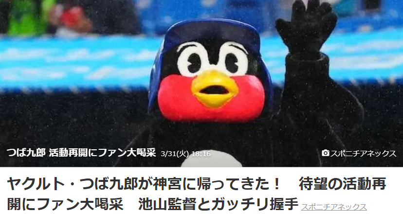 投稿日: 2026年3月31日2026年3月31日これからシーンを盛り上げてくれるであろうEnvelo(エンベロ)のジャケット ヤクルトの人気マスコットつば九郎が31日の本拠地開幕戦で神宮球場に登場しました。 “これからシーンを盛り上げてくれるであろうEnvelo(エンベロ)のジャケット” の続きを読む